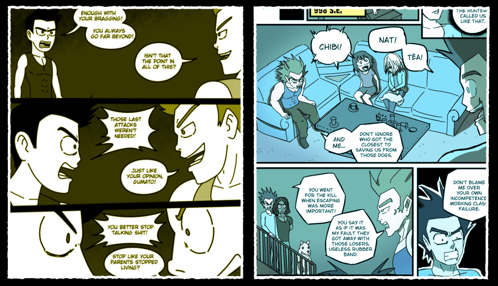 Dackon on the other hand, was originally a character from TMBD, and although he was going to appear near the end of the original Break Umbrella, I thought it made more sense for him to appear form the start, specially since the first chapters lacked Intelligus characters (animals), and I feared not showing at least one Intelligus would give new readers a wrong idea of the world (I only wish I could have added Felpas in some way prior to Garras’ first appearance).